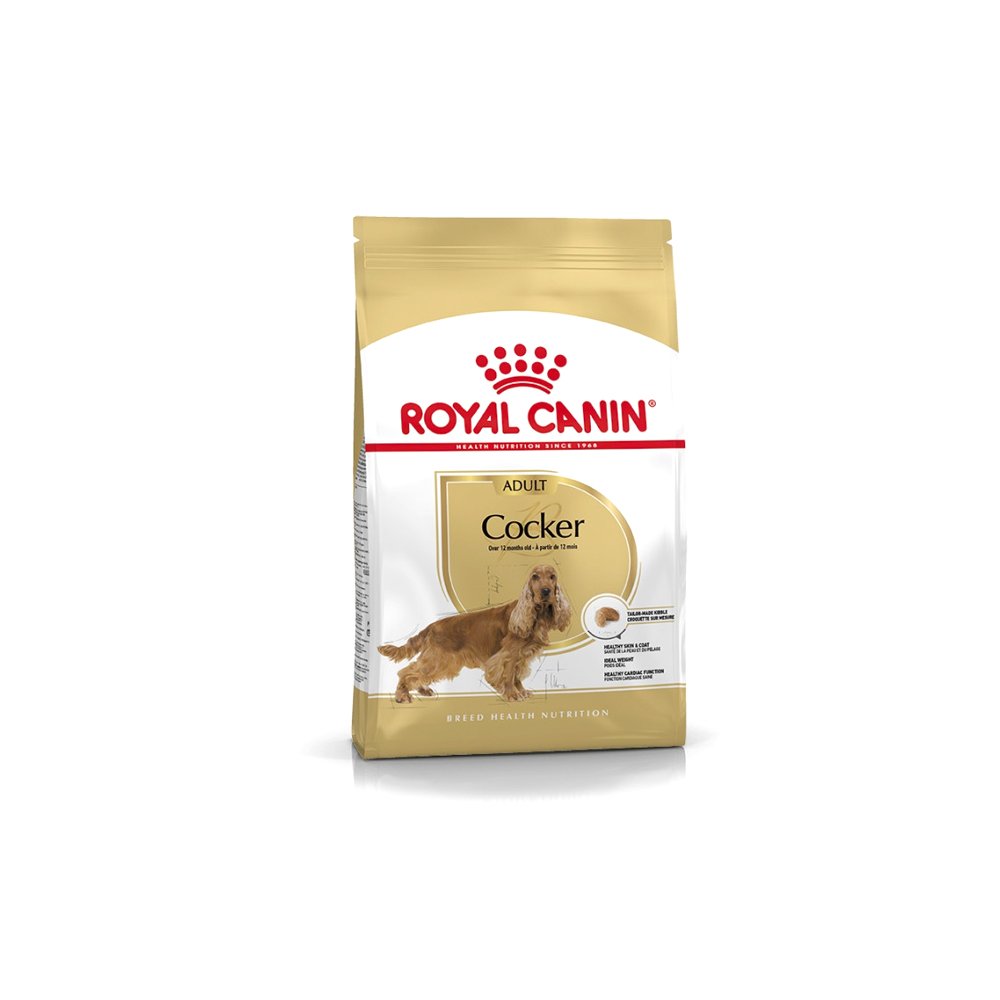 Suitable for Cocker Spaniels over 12 months old, ROYAL CANIN® Cocker Adult is specially formulated with all the nutritional needs of your dog in mind. To help maintain the health of your dog’s skin and coat, ROYAL CANIN® Cocker Adult contains an exclusive complex of nutrients that helps to support the skin’s barrier role. Enriched with borage oil, vitamin A, and Omega-3 fatty acids (EPA and DHA), this formula helps to keep your dog’s coat nourished for optimal health. The Cocker Spaniel breed has a tendency to willingly exceed its daily intake allowance if given the chance. That’s why it’s important to help your dog manage its weight and body type. ROYAL CANIN® Cocker Adult features an optimal formulation, including controlled fat contents, in order to allow a limited energy intake on a daily basis. ROYAL CANIN® Cocker Adult’s exclusive formula also helps to support your dog’s cardiac health, thanks to a specific combination of nutrients that contribute to maintaining health of the cardiac muscle. What’s more, the shape and size of the kibble in ROYAL CANIN® Cocker Adult is tailor-made exclusively for the Cocker Spaniel breed. This formula contains calcium chelators, which help to slow down the formation and build-up of tartar – ultimately supporting your dog’s dental hygiene.