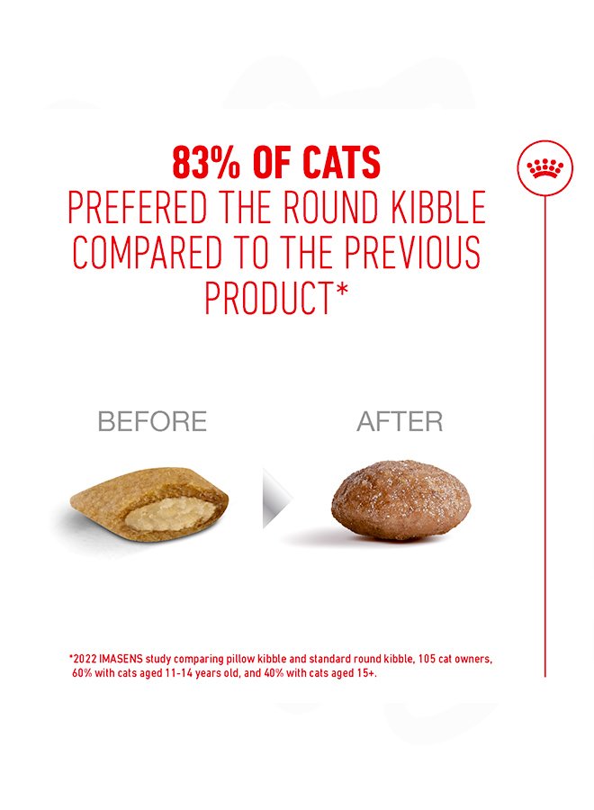 ROYAL CANIN® Ageing 11+ is a dry kibble diet suitable for cats aged 11 and above.