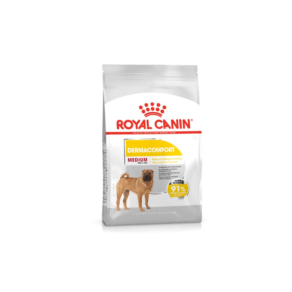 Medium Dermacomfort is formulated to meet the unique nutritional needs of medium dogs over 12 months old, between 23-55 lbs prone to skin irritations and itching.