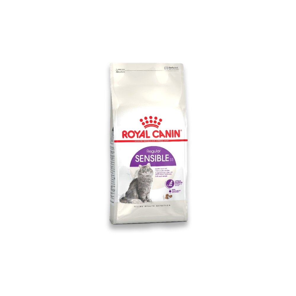 Some cats’ digestive systems can be sensitive to certain types of food, if this is the case for your cat then a change in its diet may be required in order to settle its stomach. There are many nutrients that are likely to have a soothing effect on your cat’s digestive system. Suitable for adult cats aged 1-7 years, ROYAL CANIN® Sensible 33 is specially formulated to support adult cats showing signs of sensitivity to certain food. It contains an exclusive combination of nutrients to strengthen and support optimal digestive security. ROYAL CANIN® Sensible 33 is highly palatable and contains three different kibble shapes and carefully selected flavourings to stimulate food intake and allow for easier digestion. What’s more, ROYAL CANIN® Sensible 33 has also been formulated to help maintain a healthy urinary system in adult cats like yours. Once your cat’s digestive system begins to improve, you can continue to feed it ROYAL CANIN® Sensible 33, as it’s been specifically designed to not only support your cat’s digestion, but to also maintain it thereafter.