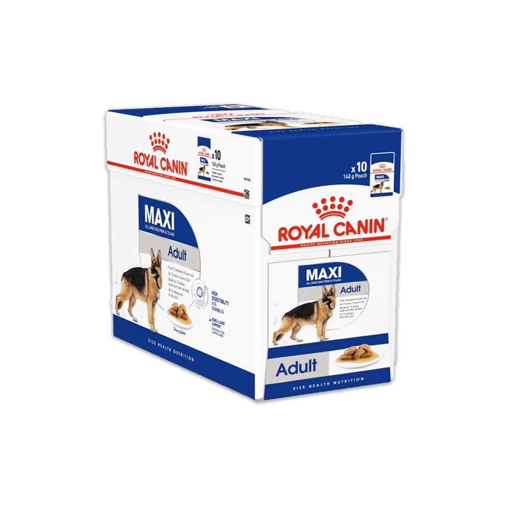 Suitable for all large dogs between 15 months-8 years old that weigh between 26-44 kg, ROYAL CANIN Maxi Adult in Gravy is specially formulated with all the nutritional needs of your adult dog in mind. ROYAL CANIN Maxi Adult in Gravy’s exclusive formula contains a balanced supply of dietary fibre and high quality protein, selected for its very high digestibility. ROYAL CANIN Maxi Adult in Gravy contains nutrients that help to support and maintain your dog’s strong bones and healthy joints throughout its adult years. What’s more, ROYAL CANIN Maxi Adult in Gravy is enriched with Omega-3 fatty acids, such as EPA and DHA. These fatty acids help to maintain your dog’s healthy skin condition. To cater to each dog’s individual preferences, ROYAL CANIN Maxi Adult is also available as dry food, with crunchy and tasty kibble. If you’re considering mixed feeding, simply follow our feeding guidelines to ensure your dog gets an accurate amount of both wet and dry food for optimal benefit.